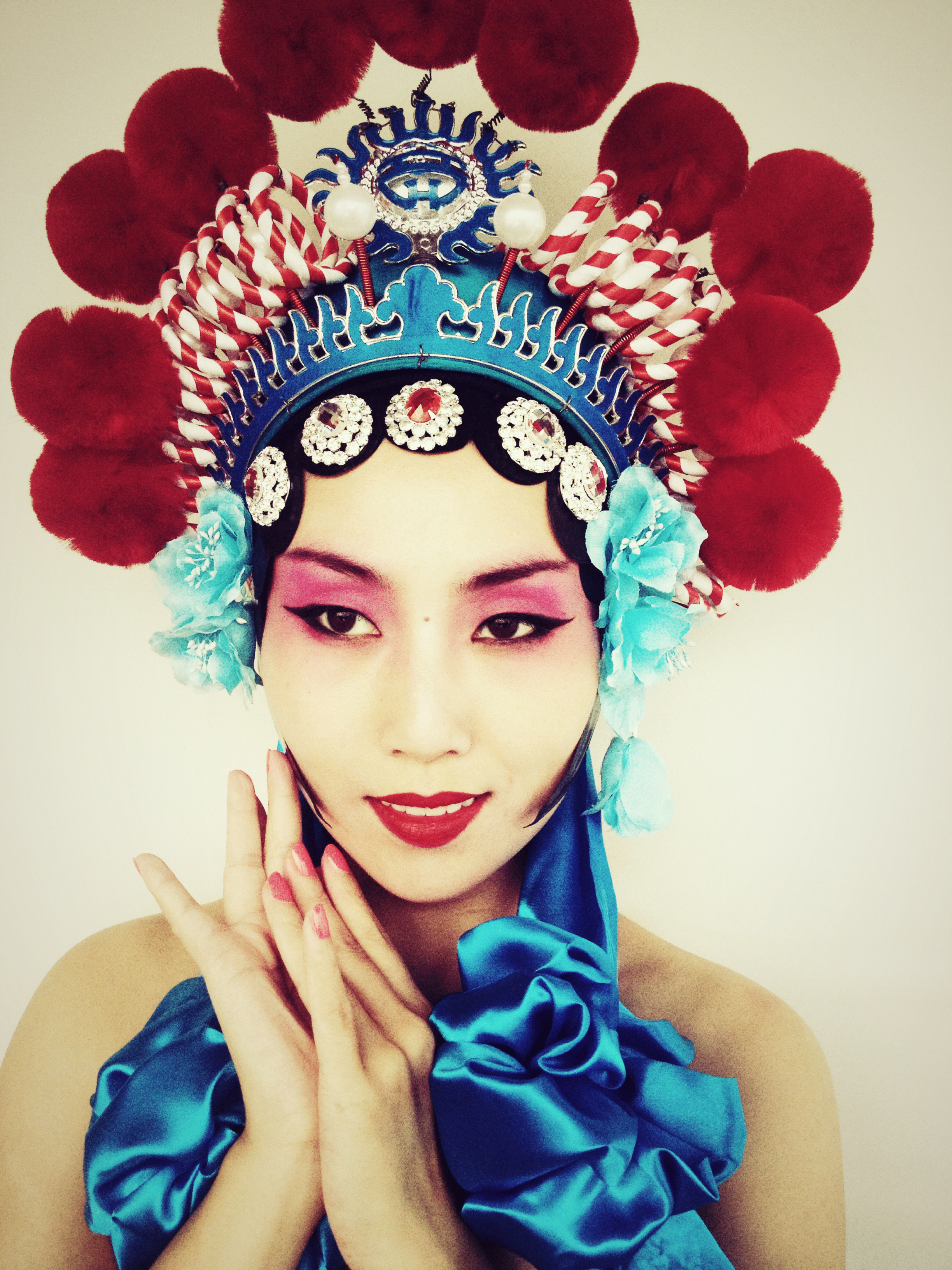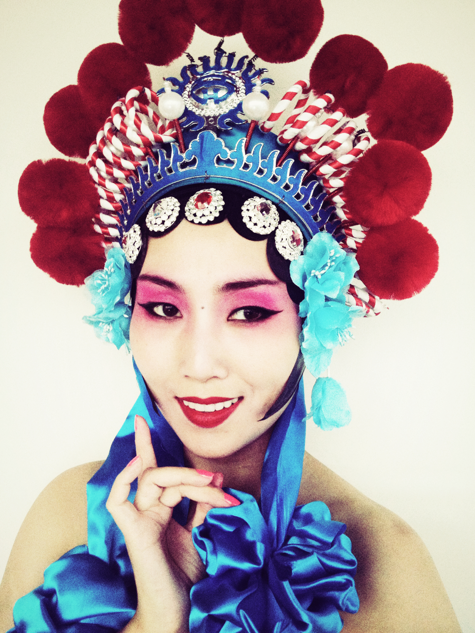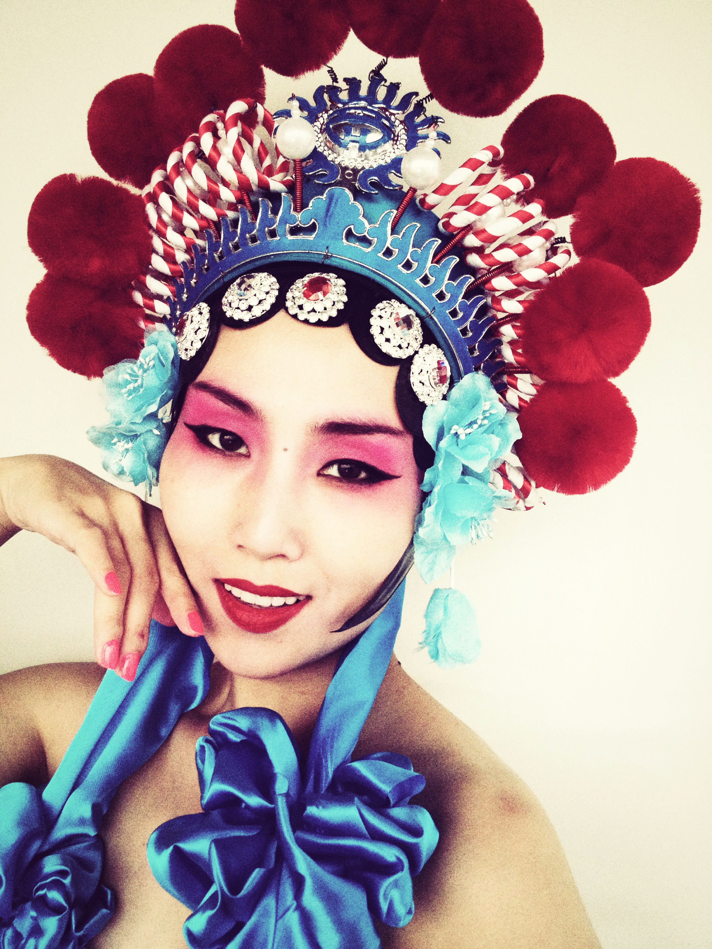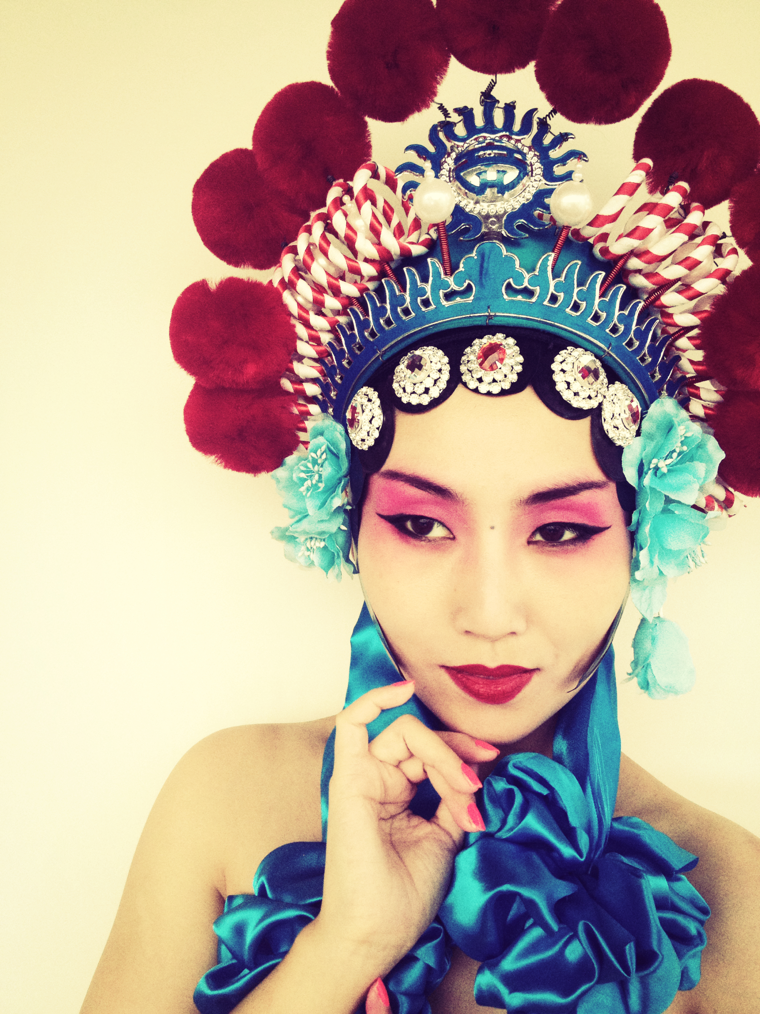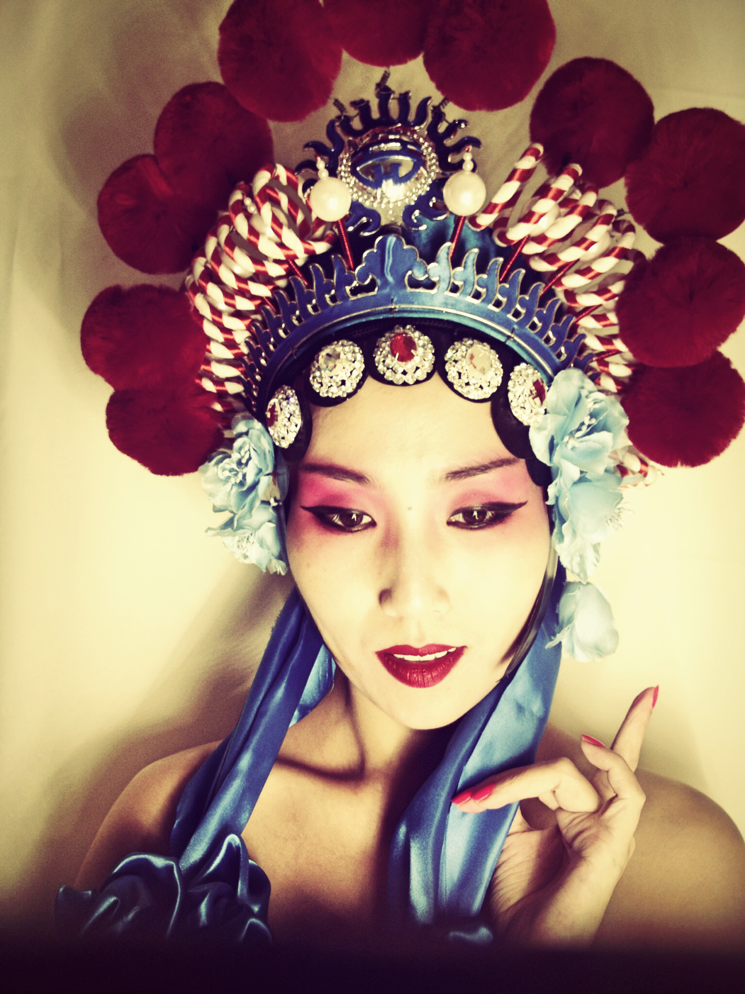 Thank to the popularity of Pretty Venus going through the internet I was lucky to find this beautiful modified Opera headpiece and accessories online on Taobao.com. For the make-up I have to thank my mom again. She lend me her last little box of rouge and color she kept as a memory of the time when she was still performing on stage. This is a real treasure.